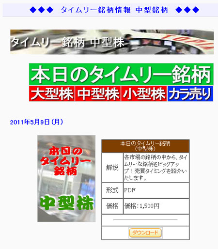 購入したい商品を選択し、対象商品の「ダウンロード」ボタンをクリックする。 |